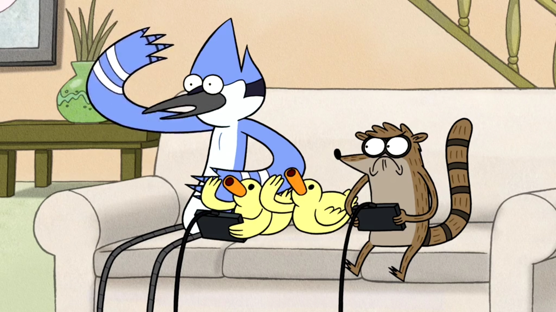 The main Regular Show episode featuring ducks is titled "A Bunch of Baby Ducks," where Mordecai and Rigby find adorable baby ducks that turn out to be dangerous martial artists, leading to chaos and a giant duck fight. They also appear in the multi-part "Exit 9B" and the epic "Brilliant Century Duck Crisis Special," which features giant ducks and geese battling it out.